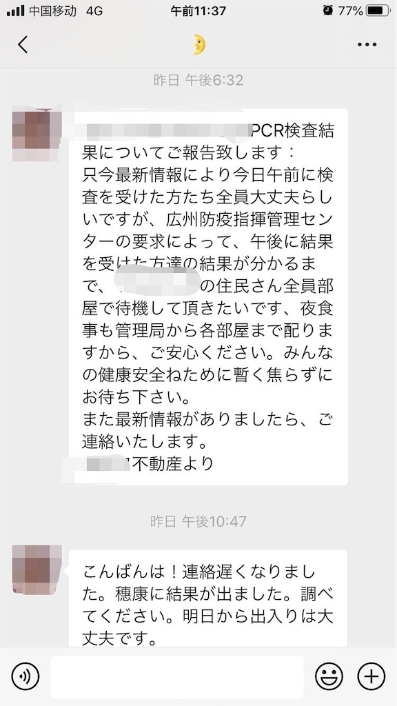 但しまだその時点ではマンション全員の結果が出ていなかったので正式な報告、外出許可はお預けとなりました。